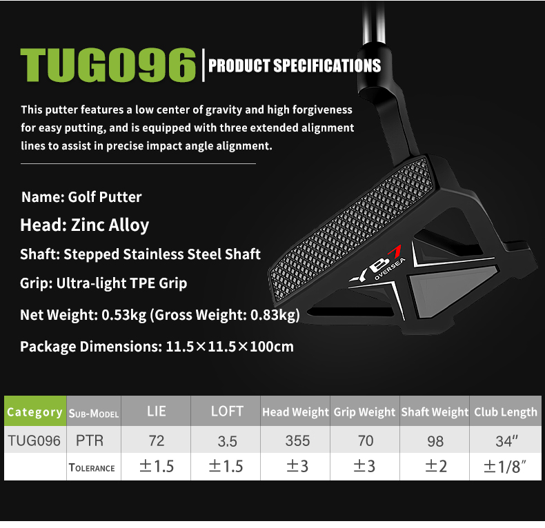 Low Center Gravity Putter with 3 Aiming Line